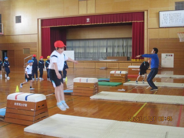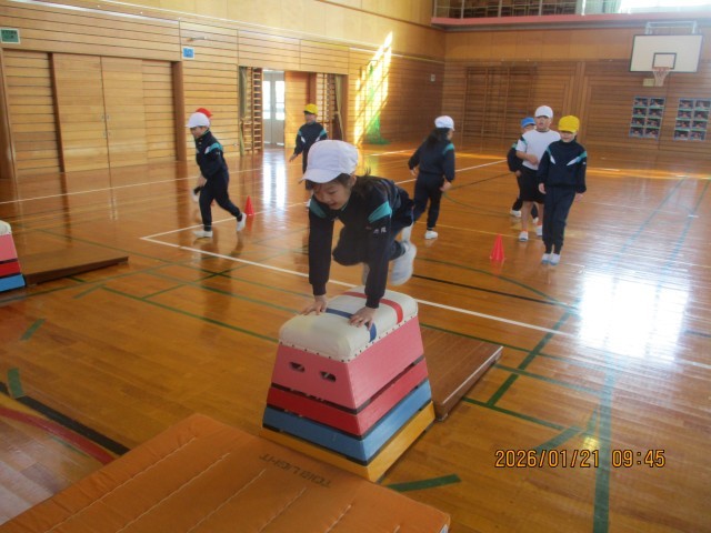 跳び箱週間がはじまりました。今日は、基本の練習をしました。繰り返し練習するうちに、少しずつ上達している子供たちでした。
