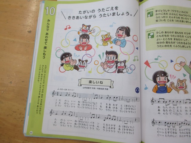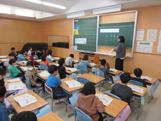 「楽しいね」の楽曲の音符を見て、音を長めに伸ばすところの歌い方を学びました。