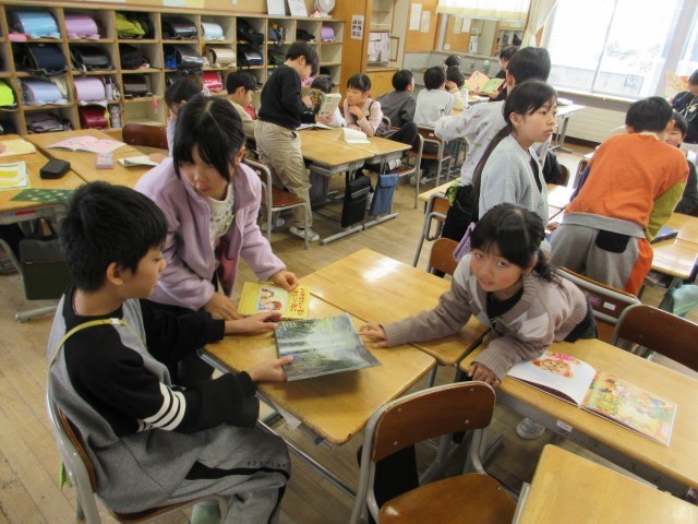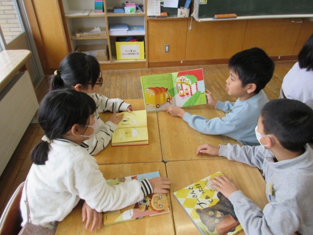 縦割り班で行う読み聞かせの会に向けて、自分が選んだ本を友達に読み聞かせをしました。聞いている人が分かりやすいように、ゆっくりと本を読む様子が見受けられました。
