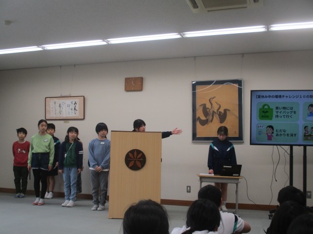 4年生は総合的な学習の時間に学んだことをまとめて、2月に行われるSDGs-ESD富山シンポジウムで発表します。今日は発表を見合って、自分や仲間の取組を振り返ったり、感想を伝え合ったりしました。