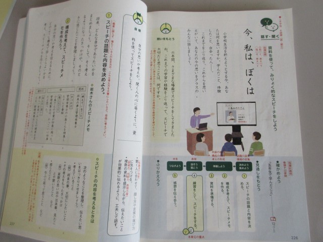 将来の夢や願いを考えてプレゼンテーションにまとめています。これを活用して魅力的なスピーチを考えます。