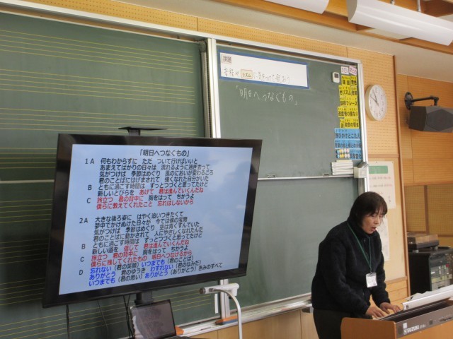 6年生は卒業式で歌う合唱曲「明日へつなぐもの」の練習を始めました。
