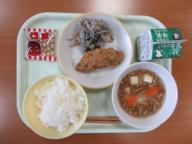 今日の給食メニューは節分献立でした。その内容は