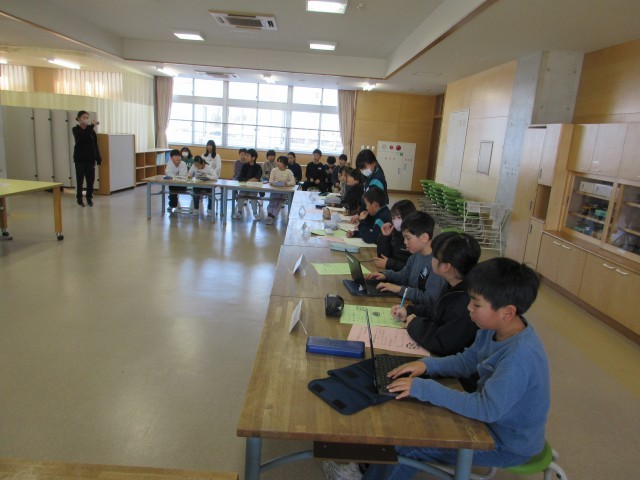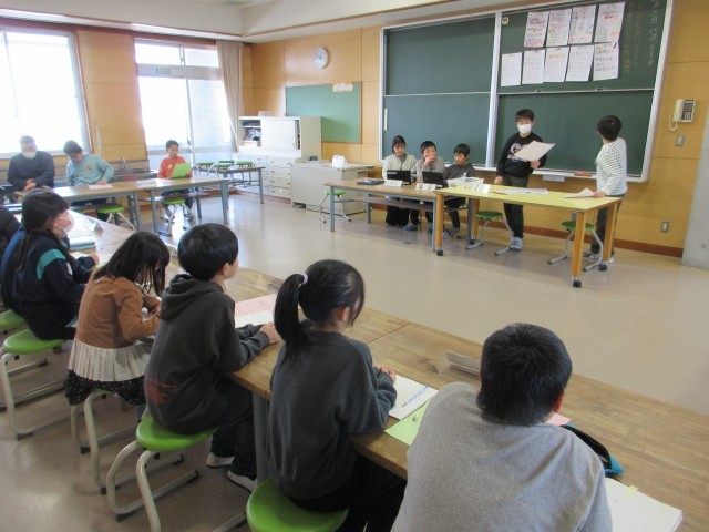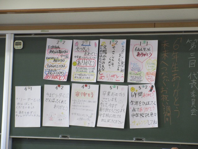 3~5年生の各クラスで話し合った内容を基に、6年生の卒業をお祝いする活動の目当てを考えました。