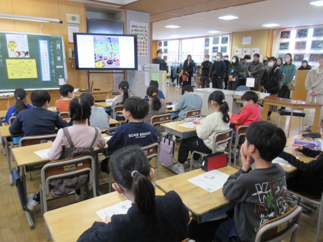 1組は国語科、2組は社会科の学習を公開しました。どちらの学級も落ち着いて学習に取り組んでいました。
