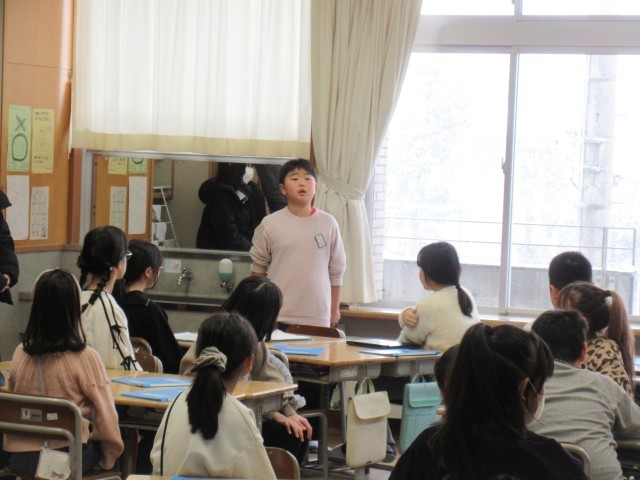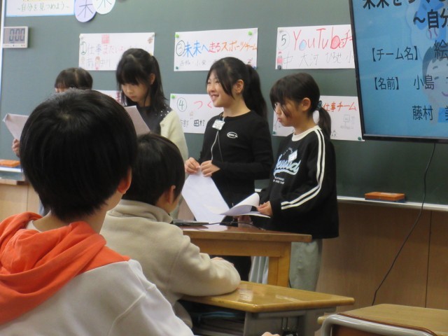 4年生は、総合的な学習の時間に将来の職業に関する疑問を調査し、分かったことや考えたことを発表しました。