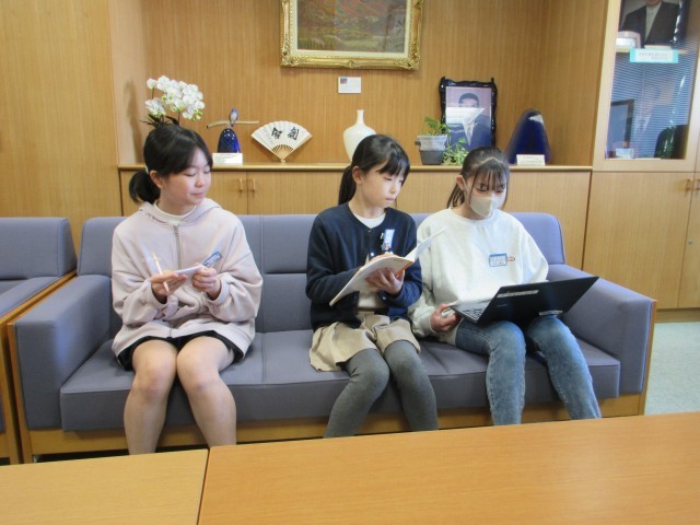 5年生は総合的な学習の時間に、6年生の卒業をお祝いする活動を行っています。3名のお子さんが6年生について知らせたいことを考えて、校長室に取材にきました。