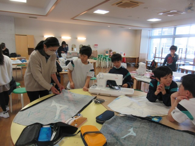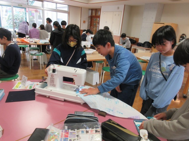 5年生は、ミシンを使ってエプロンづくりに挑戦しています。