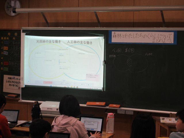 国土を保全する森林の働きについて、調べたことをもとに思考ツールでまとめました。