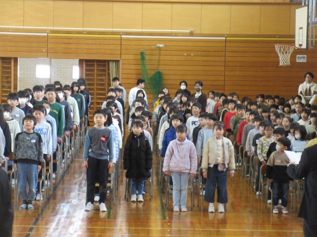 1~5年生で卒業式の練習をしました。