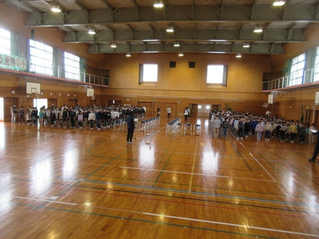 前半は、立ち方や座り方、拍手の仕方等を式の流れに沿って行い、後半は門出の言葉を練習しました。