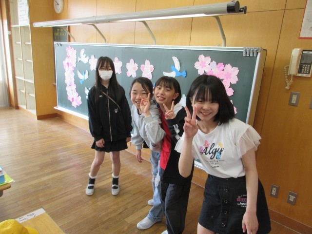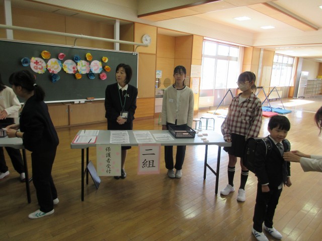 6年生が入学式の前に1年生のお世話をしてくれました。やさしく言葉をかけて接している様子が見られました。