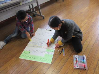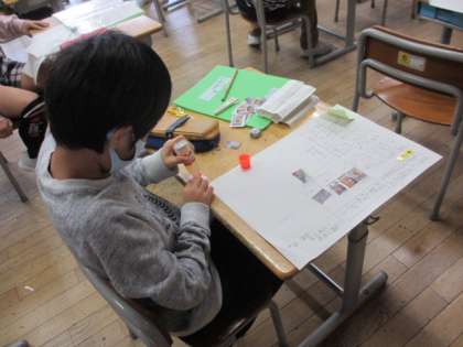 総合的な学習の時間で調べたことを各学級でまとめています。新聞に写真を貼ったり、発表原稿をつくったりするなど、皆真剣に取り組んでいます。発表会が楽しみです!