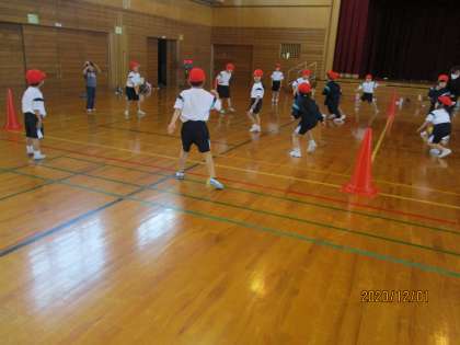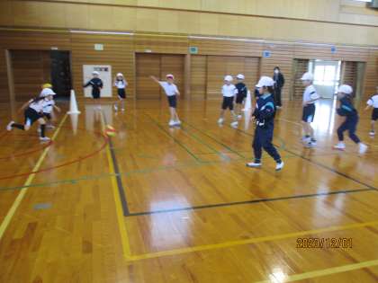 最初は1学期の「ころがしドッチボール」で、体をほぐしました。