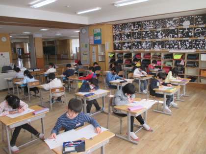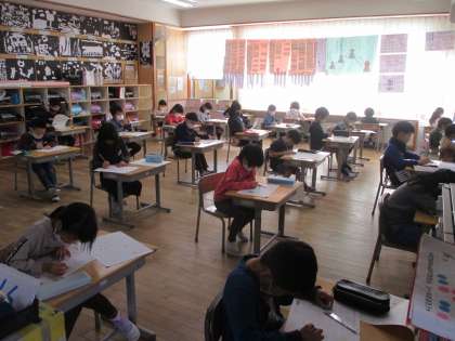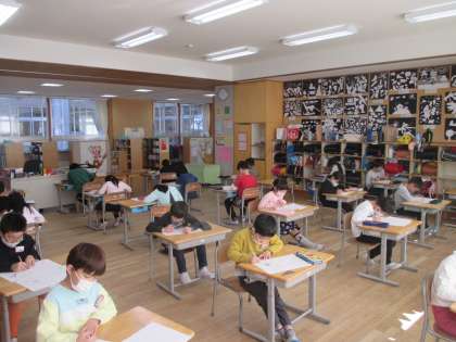 2年生は、昨日は国語、本日は算数の学習の確かめテストを行いました。2学期に学んだことを全力で出し切ろうと、時間いっぱい一生懸命に問題に立ち向かう子供たちでした。