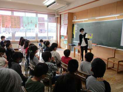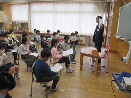 富山市立図書館から、図書館司書の先生をお迎えし、図書館の利用方法を教えていただいたり、読み聞かせをしていただいたりしました。子供たちはおもしろい話に夢中になって聞き入っていました。