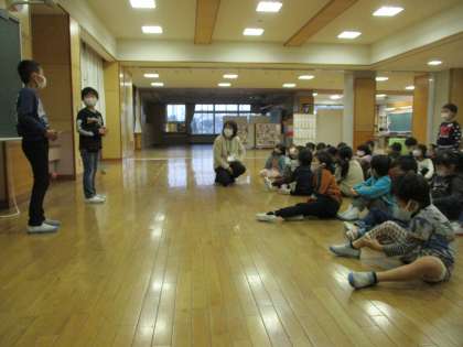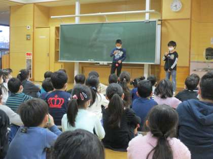 今日は、3年生のけん玉名人を招待して、技を披露してもらいました。