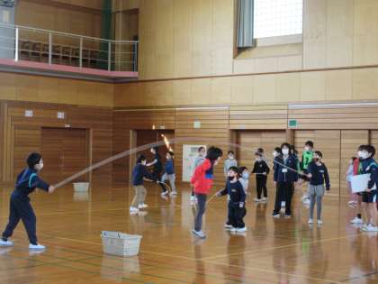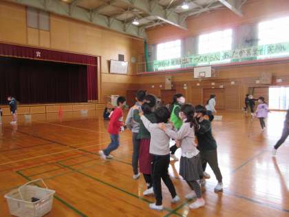 今日の昼休憩の時間、今学期最後の縦割り遊びを行いました。それぞれの班の班長が1年生から6年生まで、みんなで楽しむことができる遊びを考えてくれました。