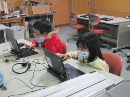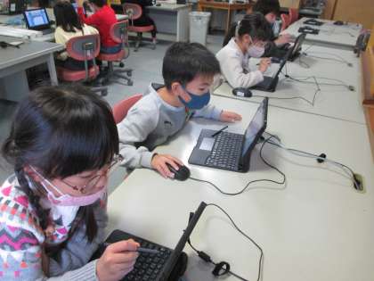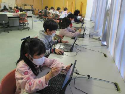 今日はコンピューター室でパソコンを使用し、九九の勉強をしました。普段とは異なる勉強方法に、子供たちは興味津々でした。これから情報教育がさらに進んでいく中で、親しみをもって情報機器に触れてほしいと思います。
