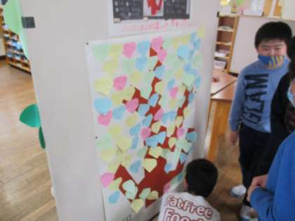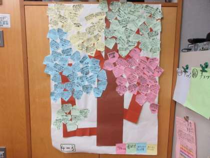 運営委員会が企画したポカポカの木キャンペーンが終了しました。4年生では、毎日葉っぱに言葉を書き込む姿が見られました。今日までに、たくさんのポカポカな言葉が集まり、木が葉っぱでいっぱいになりました。これからもたくさんのポカポカ言葉があふれる学年、学校にしていきたいと思います。
