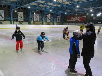 1組がスケート教室を行いました。昨年度も教室を行っているので、久しぶりのスケートをみんな楽しみにしていました。最初は、慎重に滑り始めた子供も、最後はすいすい滑る子供が多かったです。今回は片足で滑ったり、円を描いたりと昨年度よりもレベルアップした内容でした。