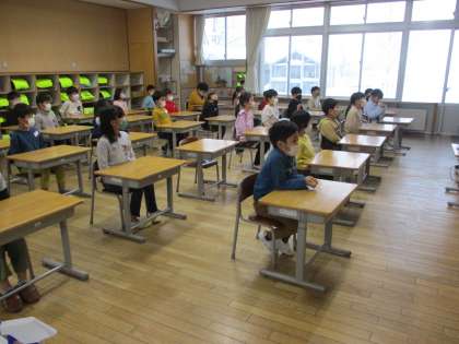 始業式では、校長先生のお話をしっかり聞きながら、一人一人3学期に頑張りたいことを考えることができたようです。