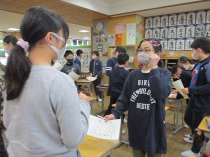 楽しかった冬休みの話をしました。1組はグループトークを、2組はおせち料理は何を食べたかを、3組は冬休みにやったことビンゴをしました。子供たちの話や表情から、充実した14日間を過ごすことができた様子がうかがえます。