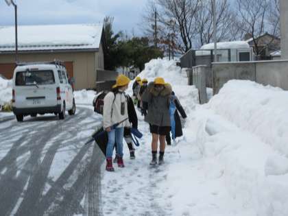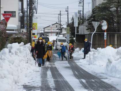 PTAの方々、地域の方々には、通学路を除雪してくださったり、寒い中子供たちを見守ってくださったりと、子供たちの安全確保にご支援、ご協力くださり、本当にありがとうございます。今後ともよろしくお願いします。