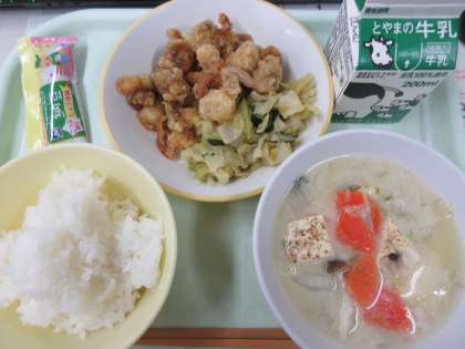 今日から給食が始まりました。今日はチューブに入っている納豆が出ました。初めて見る納豆に驚く子供たちでした。