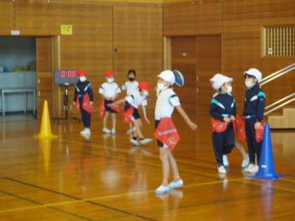 また、体育の学習では、2学期に引き続きタグラグビーをしています。今日はボールを投げたり受けたりする練習をしました。