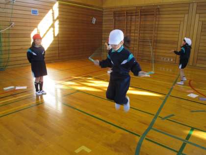 2年生は、朝の体力づくりの時間や、休み時間になわとびに励んでいます。友達と回数を数え合ったり、技を教えたりして、楽しくなわとび練習を頑張っています。