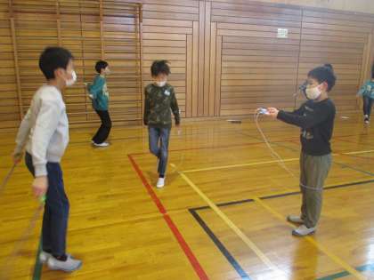 今日は体育館や多目的ルームを使って縄跳びに取り組みました。
