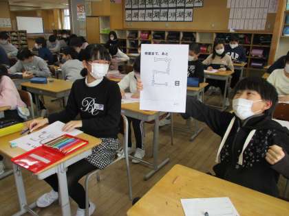 卒業までの日数とクラスのみんなへのメッセージを書き、カウントダウンカレンダーを作りました。数字のデザインやイラストを工夫しながら描き上げました。