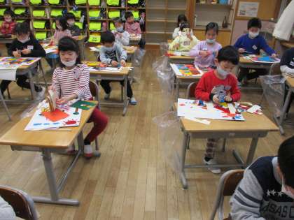 次は、作品を台紙に貼って、みんなで鑑賞会を開きたいと思います。