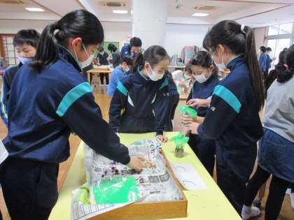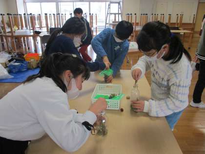 栽培委員会主催のイベント「ペットボトルフラワー作り」が昼休みにありました。子供たちは、学校に咲いていた花をドライフラワーにしたものをペットボトルに入れ、きれいな飾りを作っていました。大事そうに家に持ち帰った子供たち。お家に飾ってくださいね!