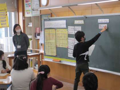 明かりを点ける実験の次は「じしゃくにつけよう」です。磁石に付く物と付かない物を実際に磁石を近付けて確かめます。「明かりをつけよう」の学習から分かったことを基に、予想を立てて実験をしました。結果はどうだったのでしょう?