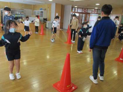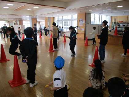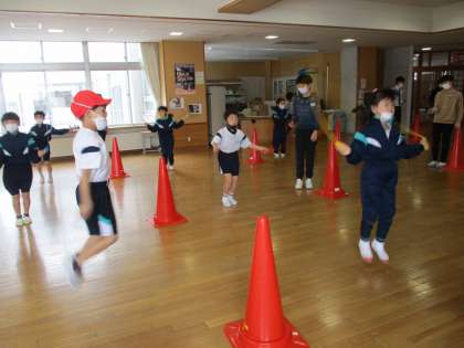 たくさんの1年生が自主的に参加し、30秒間で前跳びが何回跳べるか挑戦しました。