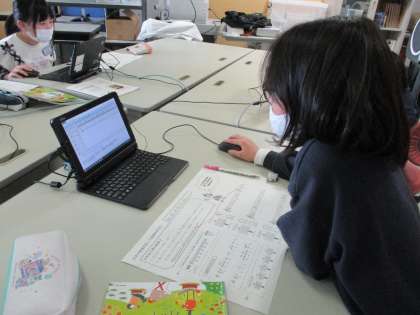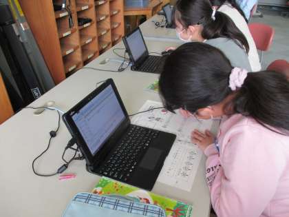 「ミ・ファ・ラ・シ・ド・ミ」の音で、パソコンのソフトを使って旋律づくりをしました。音の上がり下がりやリズムを意識して音符を五線譜に入れていき、再生すると・・・なかなか「いい感じ♪」の旋律が出来上がりました。次回はつくった旋律をグループで繋げてみます!