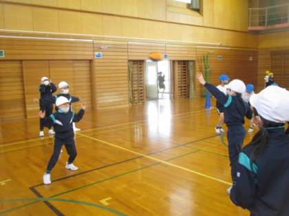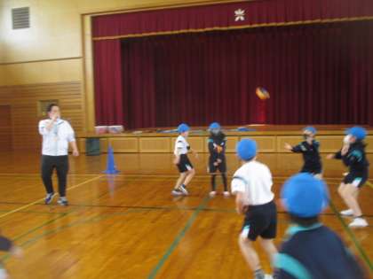 ラグビーボールを使ってパスつなぎをしました。久しぶりのタグラグビーでしたが、縦横無尽にコート内を走り回っていました。