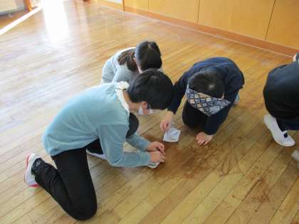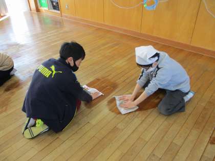今日の放課後、教員で教室のワックスがけをしました。子供たちには、6限後、床を水拭きしてもらいました。汚れているところを中心に磨いたので、床がきれいになりました。これで気持ちよく新年度を迎えられそうです。
