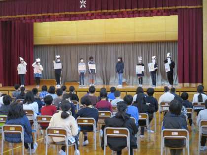 自分たちの委員会の活動内容ややりがい等について、委員会ごとに伝え方を工夫し、堂々と発表することができました。