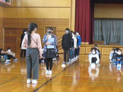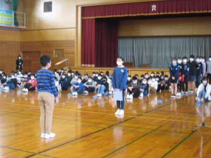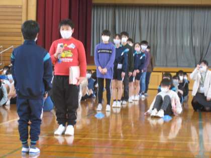 児童会活動と縦割り活動の引継式を行いました。最高学年としての役割や委員会での活動を5年生と4年生に託しました。今まで6年生、よく頑張りました。卒業まで後13日です。