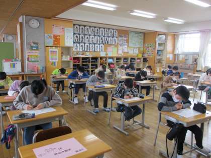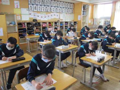 昨日から「学習のたしかめ」テストを行っています。難しい問題もありますが、時間いっぱい、じっくり考えて取り組んでいます。