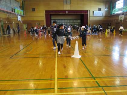 6年生さんにリードしてもらいながら、上手にボールを運ぶことができました。