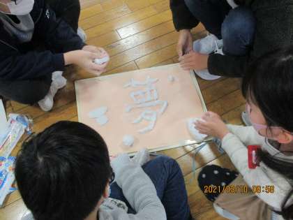 今日は2年生と6年生で思い出づくり集会が開かれました。「夢の世界」をテーマに、紙粘土を使って、一緒に工作をしました。2年生は、6年生と一緒に活動することができて、とても笑顔いっぱいでした。