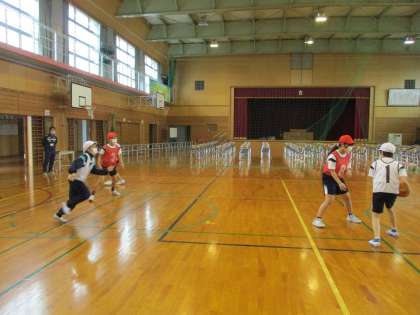 体育の学習では初めて取り組むバスケットボールです!最初は、ドリブルで前へ進むのに精一杯でしたが、基礎練習やゲームの回数を積み重ねるうちに、ドリブルで相手をかわし、シュートできるようになってきました。ゴールが決まると、とても気持ちがよく、子供たちは楽しく学習に取り組んでいます。