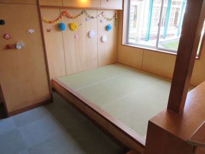 1階多目的室にある「でん」。1年生はよくその中で寝転がったり、のんびりおしゃべりをしたりしています。その畳が随分古くなっており、縁が破れてきていました。この度、PTAに助成いただき、畳を新しくしました。これからも、「でん」が子供たちにとって心が和む憩いの場であってほしいと思います。