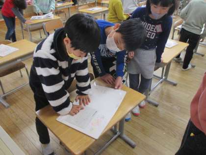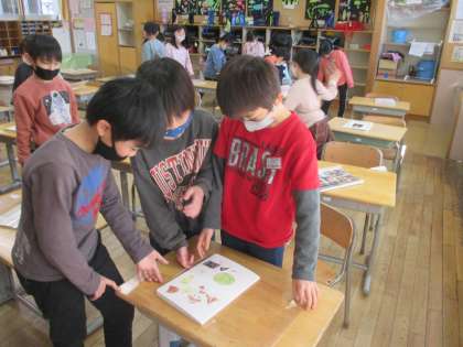 生活科の学習で自分のアルバム作りをしました。0歳の頃から現在までを振り返り、自分のことを見つめ直すよい機会になりました。友達のアルバムを見て、とても楽しそうな様子でした。