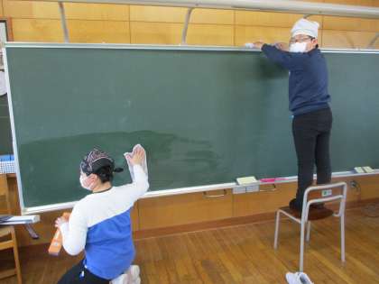 1年間使った教室や下足箱をきれいに掃除しました。来年度、新5年生が気持ちよく使えるよう、隅々までピカピカにすることができました。