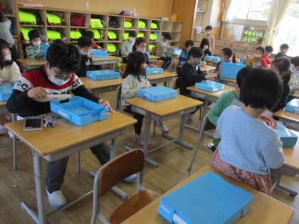 名前のシールをはがしたり、机のほこりをとったり、お道具箱の中をきれいにしたり、一生懸命に掃除をする子供たちでした。